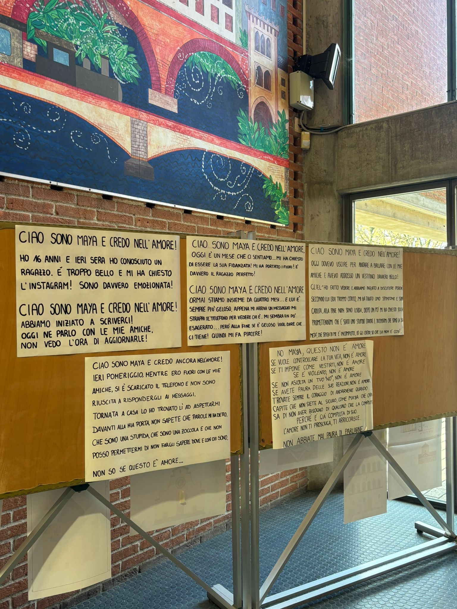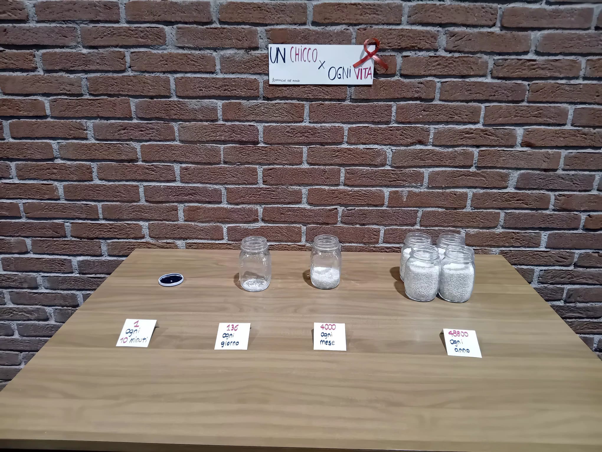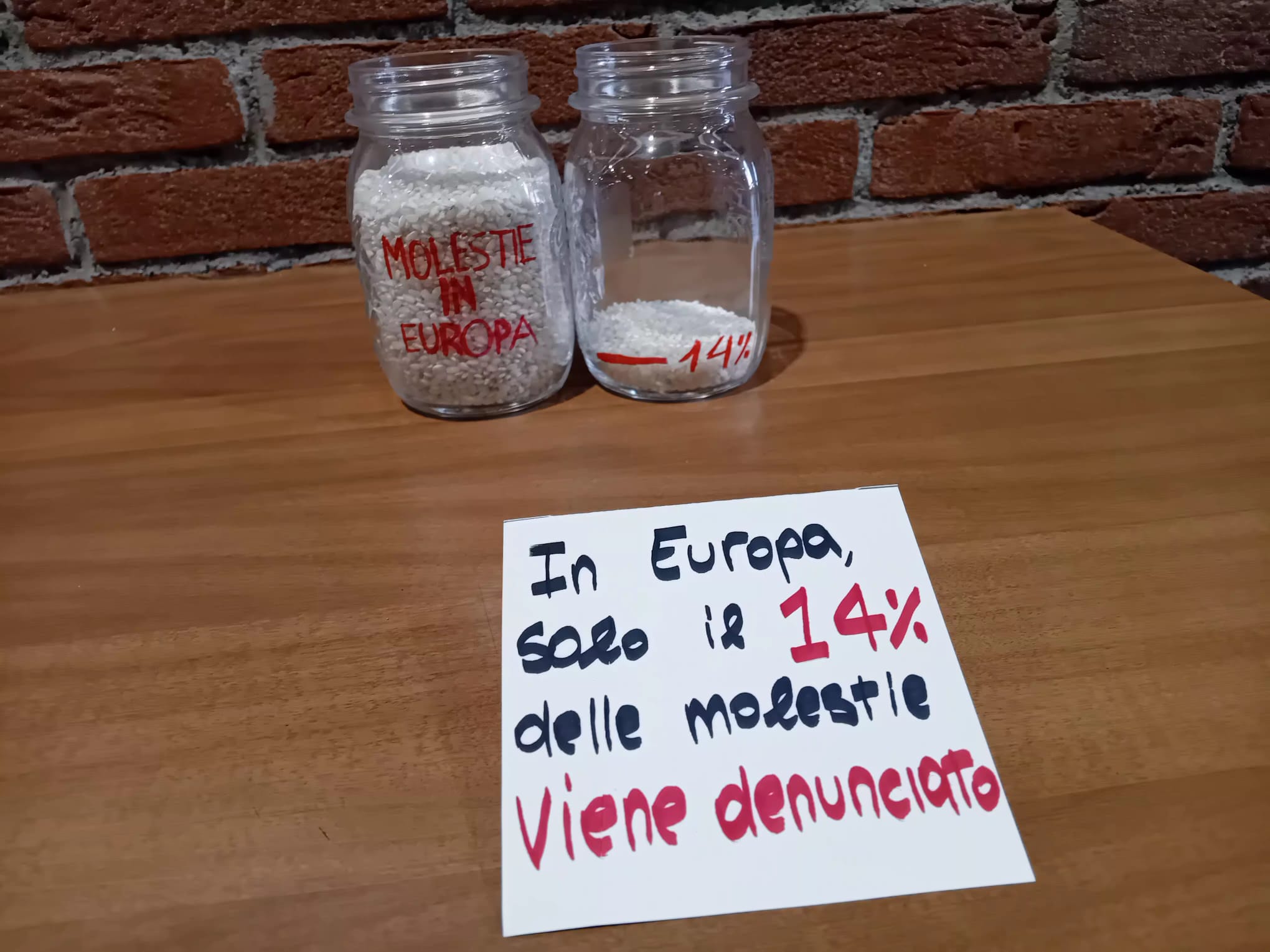 Nella sede di Cassano la 5CC, in collaborazione con la 5BC, ha creato una mostra con cartelloni e con la visualizzazione dei numeri della violenza tramite i chicchi di riso.